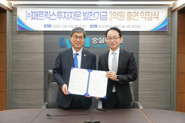 매트릭스투자자문, 숭실대학교 발전기금 출연 약정 페이지 정보 작성자 최고관리자 조회 626회 작성일 2026-03-13 13:17 본문 2026년 3월 12일 매트릭스 투자자문 발전기금 출연 약정식 진행하였습니다. 목록 이전글퇴직연금 레터 | 2025년 11월호 26.04.24 다음글퇴직연금 레터 | 2025년 04월호 25.12.17
